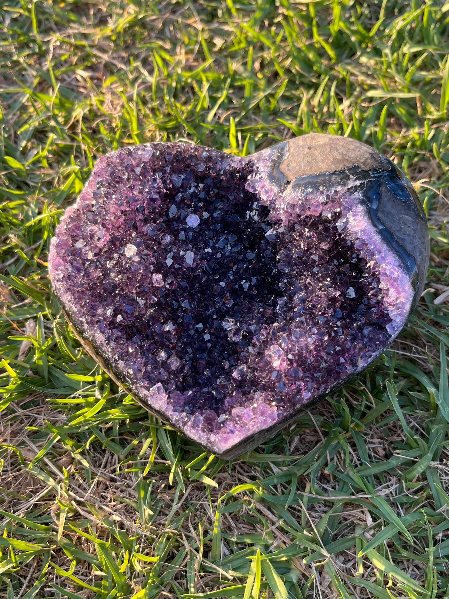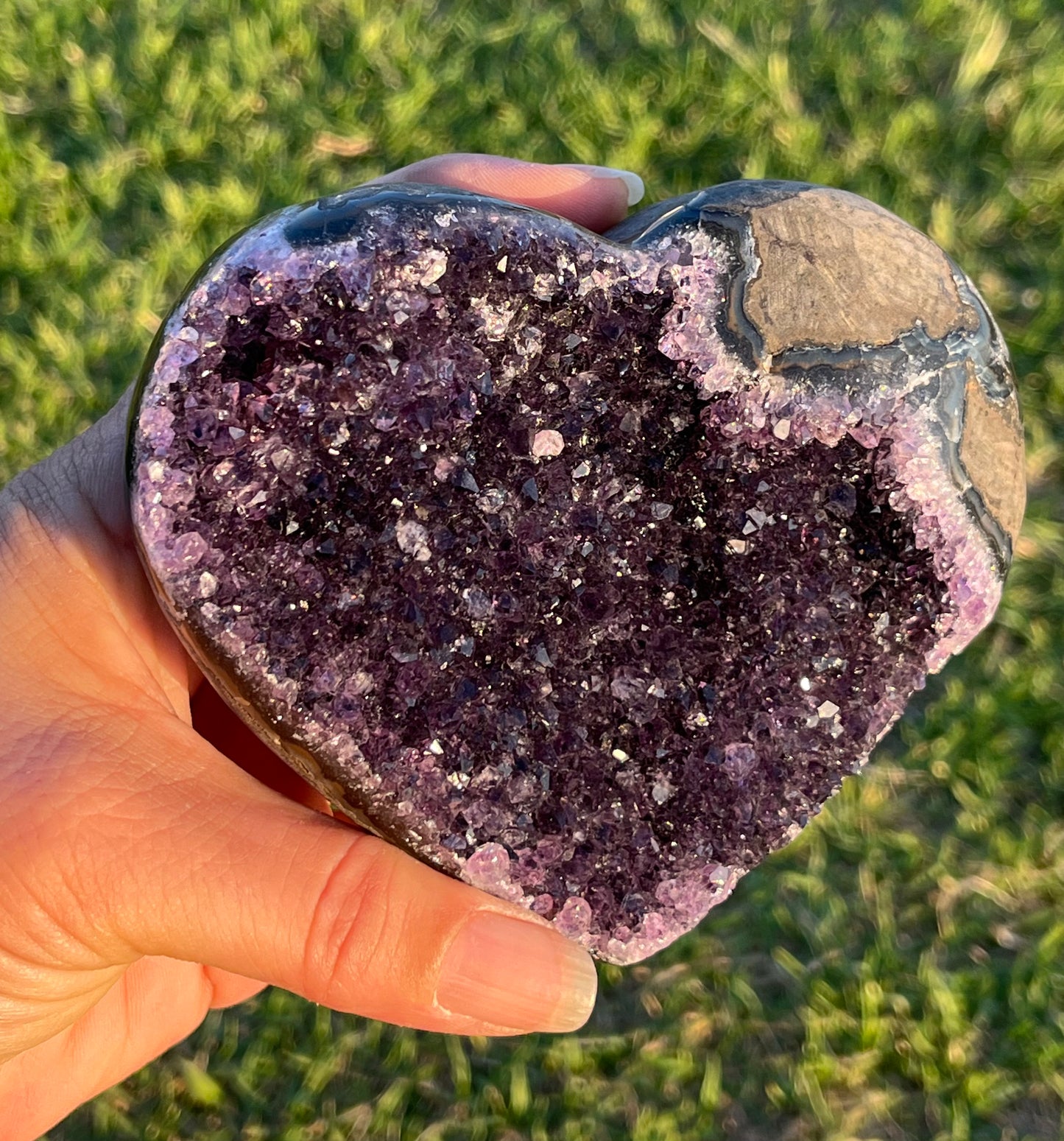 Gorgeous Amethyst Heart with Matrix and Purple Agate – A Stunning Fusion of Beauty and Energy