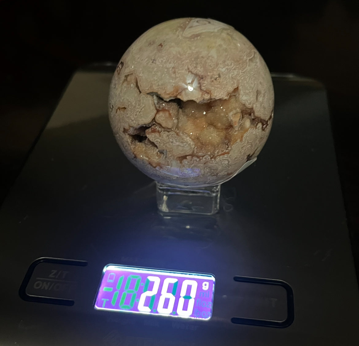 Whether displayed on your mantle, nestled in your meditation corner, or adorning your sacred space, our pink amethyst pink crazy lace sphere is sure to captivate the eye and soothe the soul.