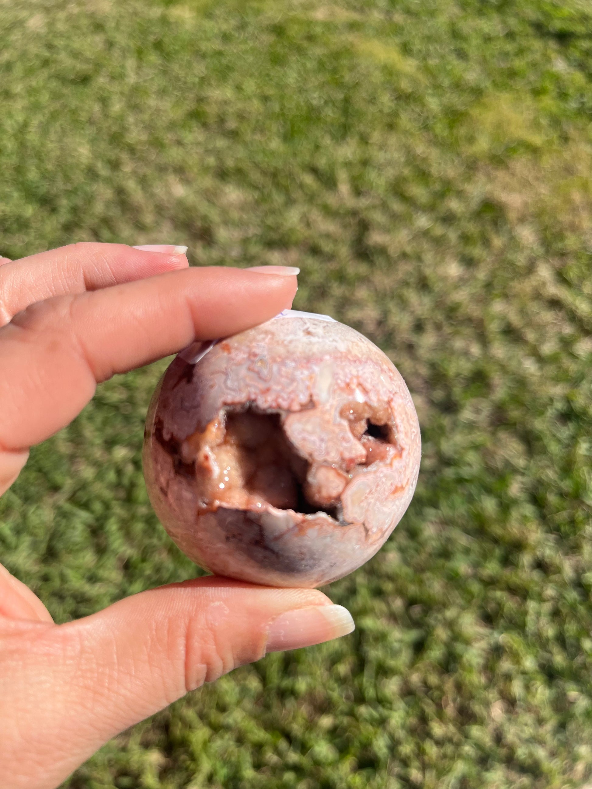 Crafted with meticulous attention to detail, each sphere showcases the delicate harmony of pink amethyst and pink crazy lace agate, creating a mesmerizing display of natural artistry. The soft pastel tones blend effortlessly, evoking a sense of grace and tranquility that will elevate any space it graces.